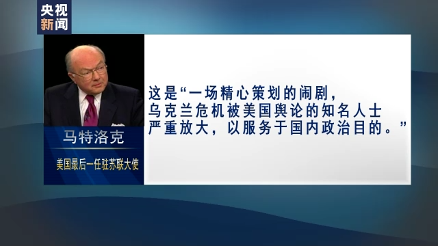很明显,这次乌克兰危机是美国蓄意促成的。 对此,美国有识之士看得清清楚楚。美国最后一任驻苏联大使马特洛克直言,这是“一场精心策划的闹剧,乌克兰危机被美国舆论的知名人士严重放大,以服务于国内政治目的。”