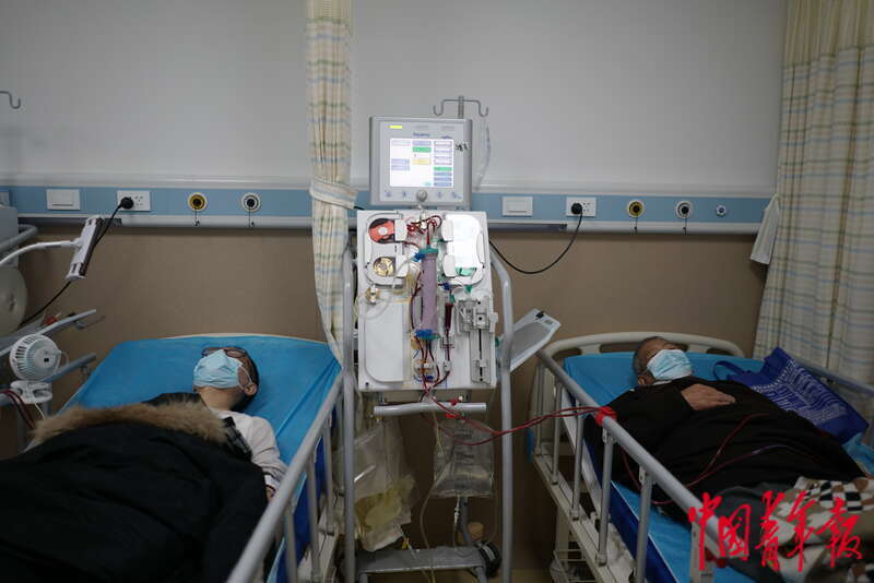 4月13日,上海市浦东新区,两名病人正在浦东医院曹路透析中心接受血液透析。中青报·中青网记者 李强/摄