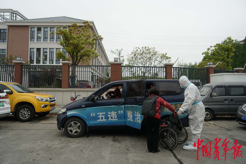 4月13日,上海市浦东新区,一名公务员开车接送两名刚刚完成血液透析的病人回家。中青报·中青网记者 李强/摄