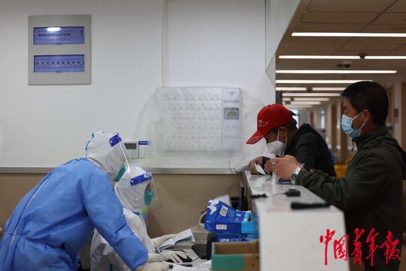 4月13日,上海市浦东新区,在浦东医院曹路透析中心,两名病人透析即将结束,病患家属正在办理相关手续。中青报·中青网记者 李强/摄