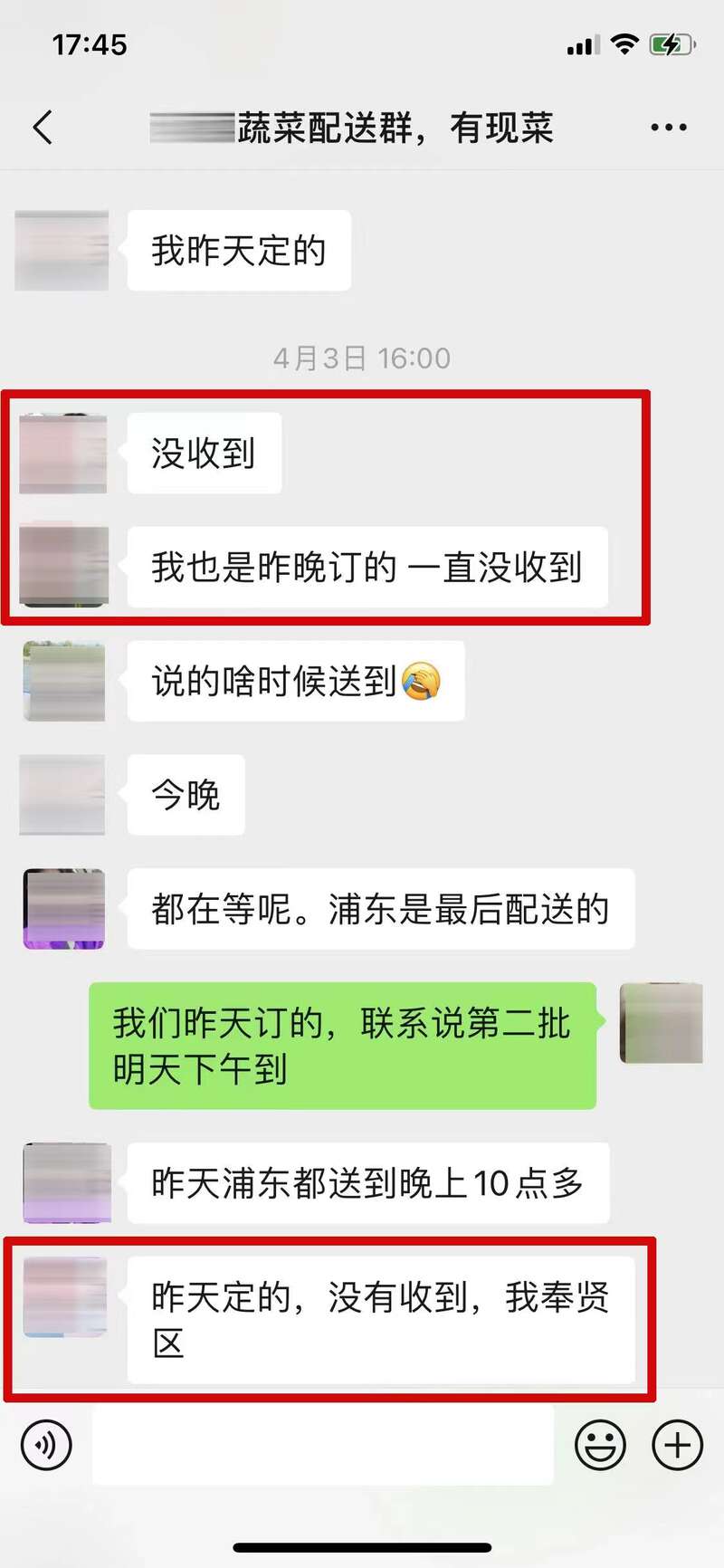 家住闵行的李先生看到信息中提供的食材价格适中,还能保障配送,当即在群内表达了购买意愿,然后根据对方要求互加好友,提供了选购清单并转账180元。浦东的李小姐和奉贤的姚女士在前一晚就完成了下单,原本承诺次日发货,却迟迟没有收到货物。