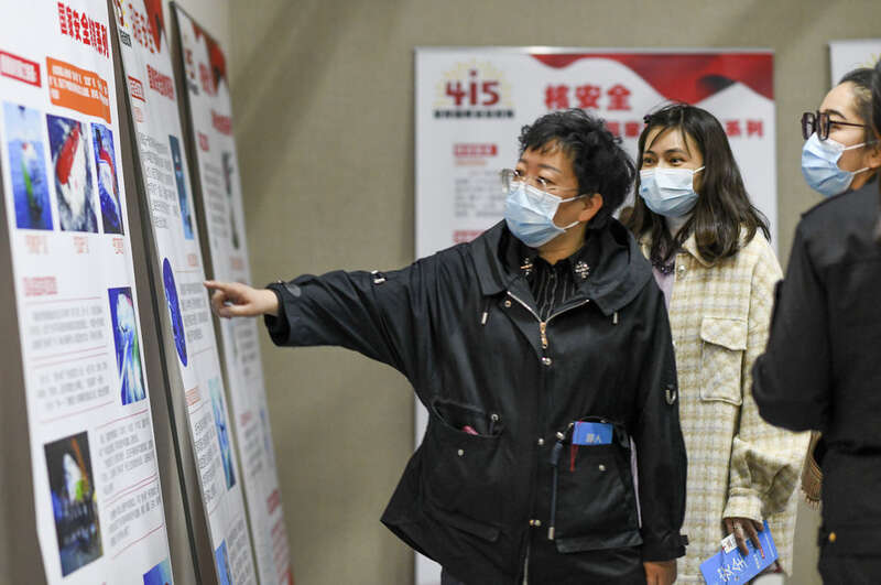 4月14日,在乌鲁木齐市美术馆,市民参观由乌鲁木齐市国家安全局主办的全民国家安全教育日普法宣传展览。