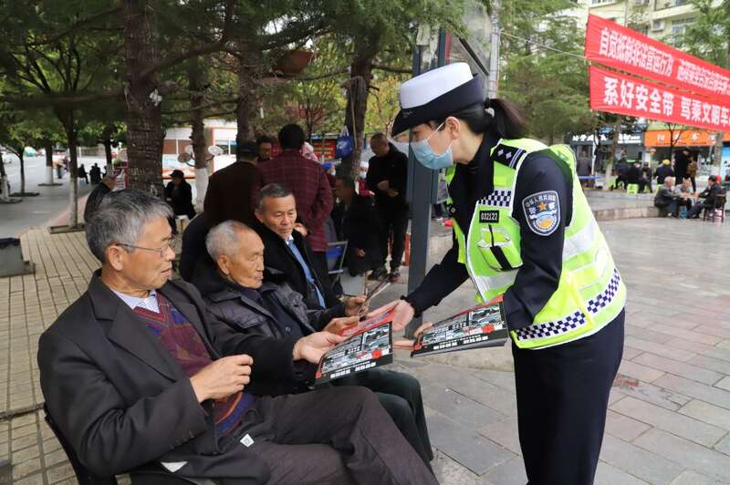 4月14日,在贵州省赤水市,民警向市民讲解国家安全相关知识。