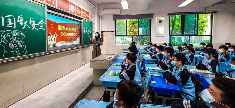 4月14日,在湖南省衡阳市常宁市尚宇学校,老师向学生讲解国家安全知识。
