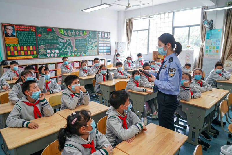 4月14日,南京市公安局建邺分局沙洲派出所民警王舒馨在辖区内一所小学为同学们进行国家安全教育宣传活动。