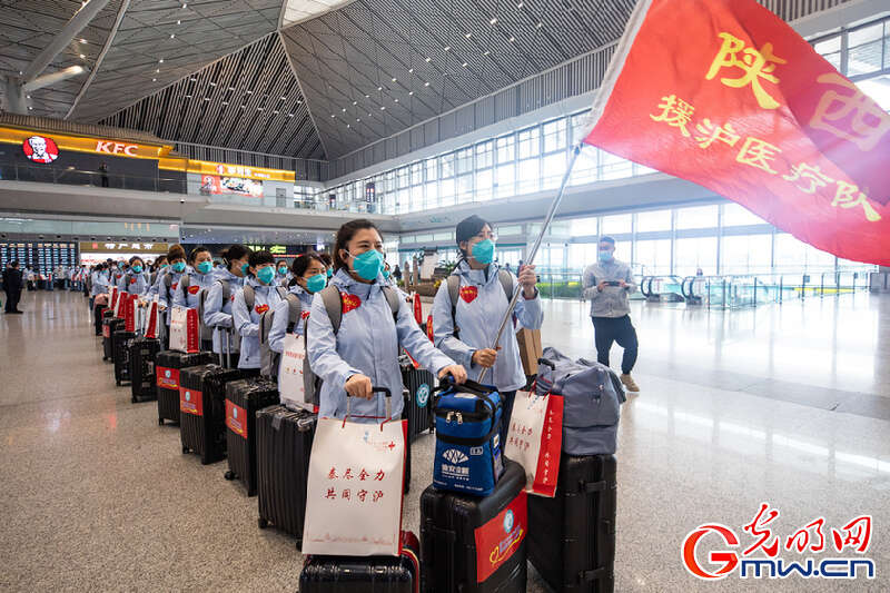光明网讯(记者 杨亚楠 赵金悦)4月15日上午,满载着1591名医护人员和800余箱医疗物资的G1922次、G1926次高铁专列先后从西安北站驶出,一路向东驰援上海,这是陕西首次开行援沪高铁专列,全力支援当地疫情防控工作。