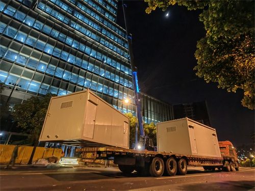 下午3时,工程队进场施工。“方舱建设采用了集装箱吊装的模式,把预制好的成品集装箱运到现场,接通水电,再将配好的消杀设备放进去。”李继说,这种模式最高效,但对施工的要求非常精确,“集装箱和物资运到现场后,从卸货、搬运到安装,每一个环节所需时间都测算好,各个工种精准配合。”