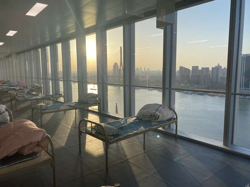 近日,网上很多人转发申阳滨江方舱的照片。这是一间看得见风景的病房,从落地窗看出去,能看到近在咫尺的渔人码头建筑和对岸的陆家嘴天际线。患者把这里称为“江景方舱”。