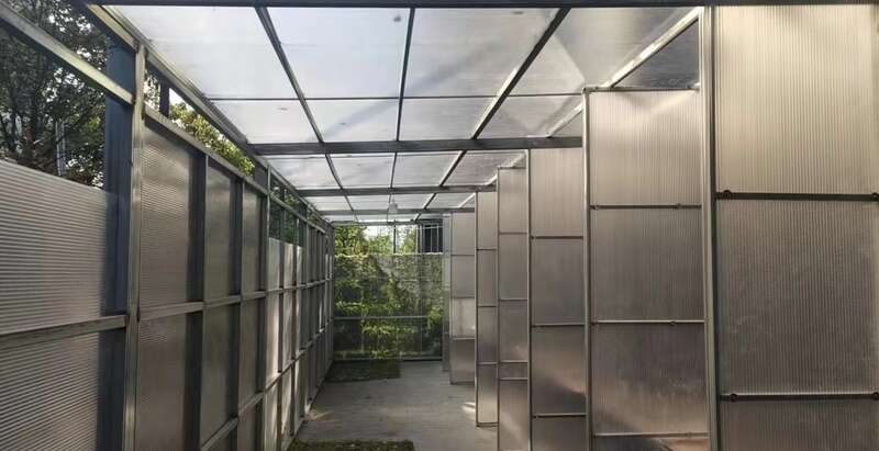 改造方舱受楼宇的现场环境限制,往往需要“在螺蛳壳里做道场”。位于民府路的铁狮门大楼,由于现场是幕墙结构,无法把成品集装箱吊装到室内。团队利用城市道路和幕墙中间的长条空间,临时搭了一个“阳光二脱区”。护士进入二脱区进行消杀时,阳光能从顶棚照进来。“我们希望通过这样的设计,给医护人员们一点关怀。”
