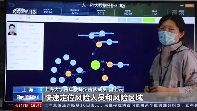 上海大学青年教师突击队成员 夏上云:我们利用大数据分析和人工智能等技术,快速定位风险人员和风险区域,大大加快了流调和风险管控的速度以及准确度,高效快捷地织密了防疫网,筑牢了防疫墙。