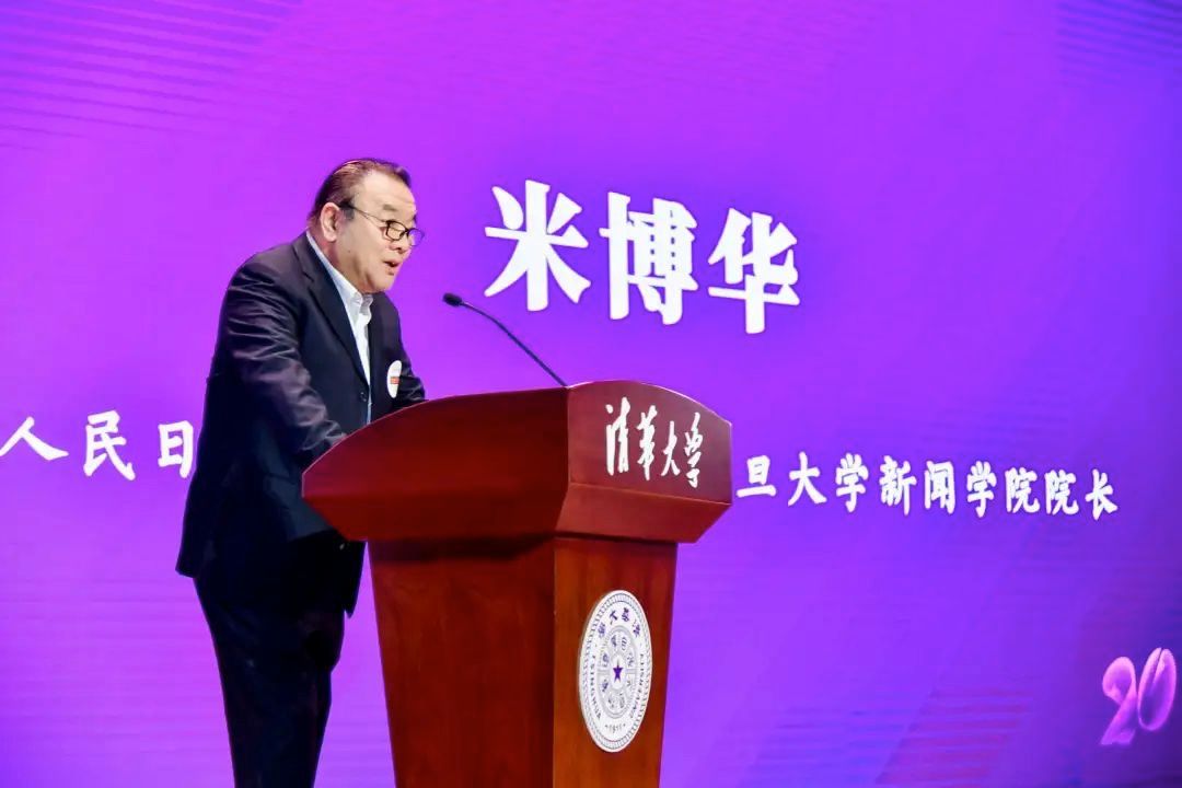 人民日报社原副总编辑、复旦大学新闻学院院长米博华在致辞中表示,清华新闻与传播学院取得的成绩是与一代一代师生共同奋斗是分不开的,首任院长范敬宜将自己的晚年几乎全部倾注给了新闻学院的建设;柳斌杰院长继承传统,把清华新闻与传播学院的建设带到了一个新的高度。面对新闻与传播事业的机遇与挑战,他充分肯定了学院确立的“素质为本,实践为用,面向主流,培养高手”这一办院方针和指导思想的正确性,指出应该从中汲取智慧和力量,把新闻传播事业办得更好。