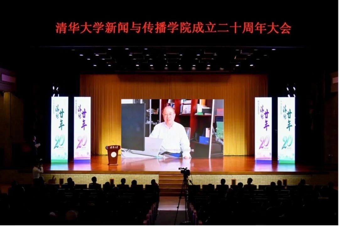 清华大学新闻与传播学院成立20周年大会,4月16日上午在清华大学大礼堂举行。原国家新闻出版总署署长、第十二届全国人大教科文卫委员会主任委员柳斌杰,清华大学校长王希勤,中国外文出版发展事业局局长杜占元,中华新闻工作者协会党组书记、常务副主席刘正荣,人民日报社副总编辑崔士鑫,中央广播电视总台副台长王晓真,原国家新闻出版广电总局副局长张丕民,中国日报社原总编辑朱英璜,中国新闻社社长陈陆军,新华社研究院院长刘刚,清华大学副校长彭刚等嘉宾出席大会。中国社会科学院、北京大学、中国人民大学、中国传媒大学、北京师范大学等国内科研机构和兄弟院校负责人、媒体机构负责人、业界导师代表、校友代表及新闻与传播学院师生员工参加了大会。大会由新闻与传播学院党委书记胡钰主持。