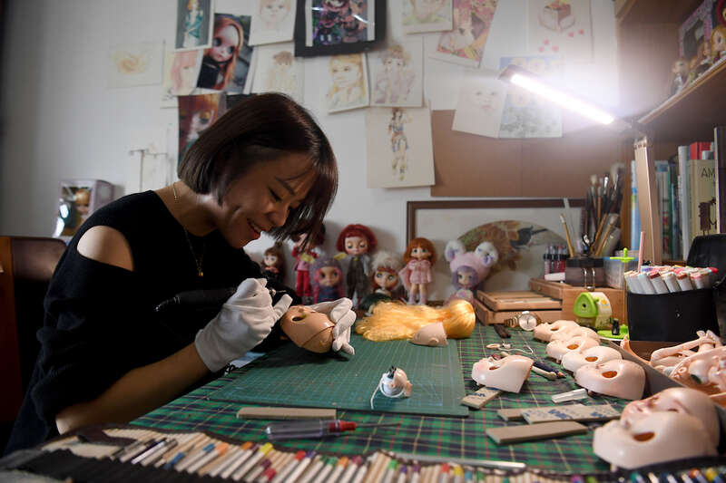 广西南宁,80后改娃师黄思林正在给娃娃“换脸”。据介绍,改娃师是对娃娃脸壳进行雕刻上妆制作出定制款的娃娃玩偶。目前“娃圈”的改娃师手工费高达千元,有的甚至高达上万元。
