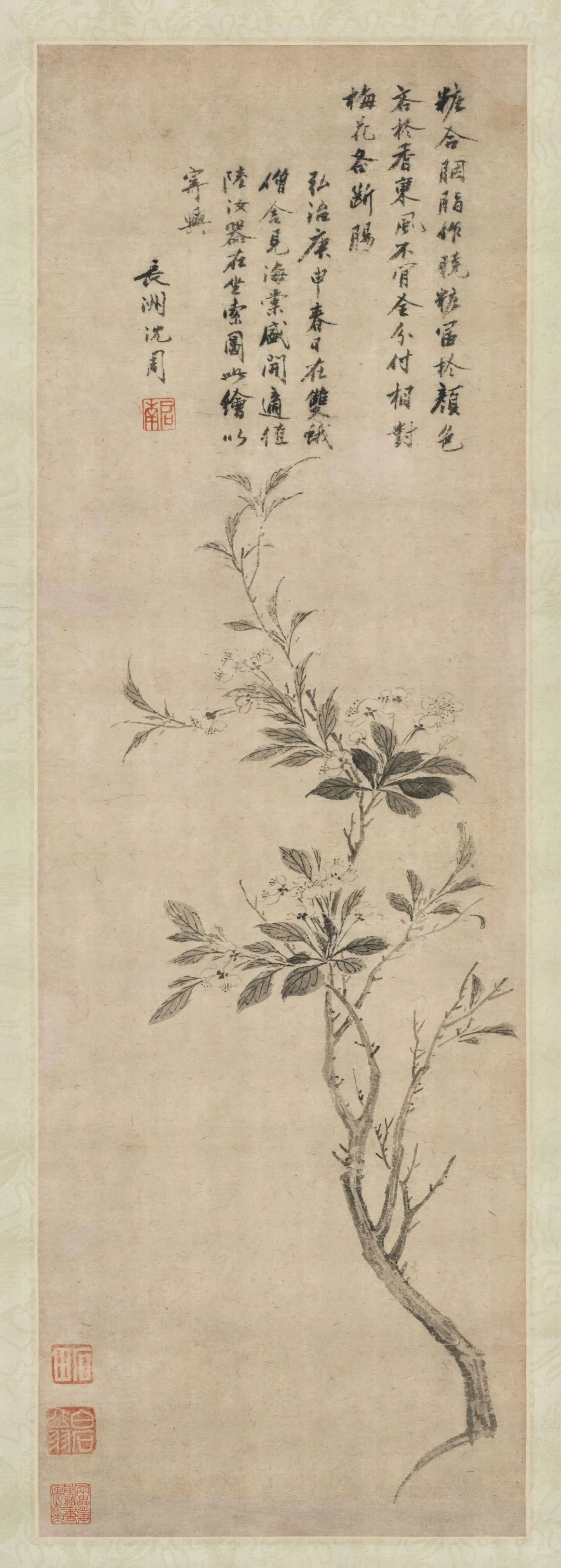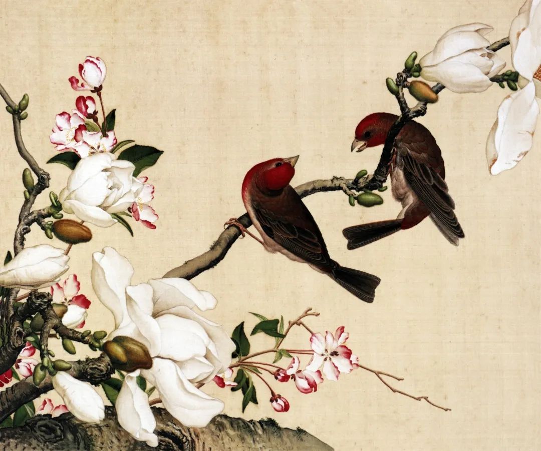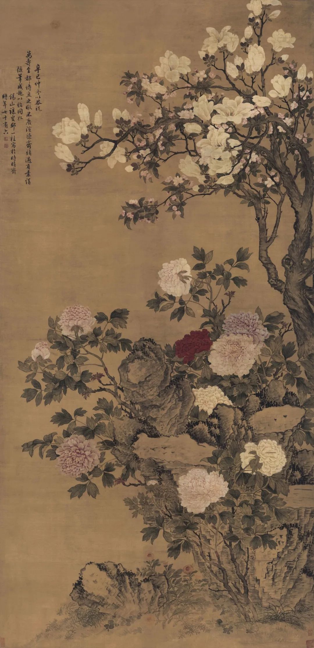 此幅是陆治、王穀祥合画玉兰、海棠,二花交相辉映,一派春华。二人勾花点叶,得自然生趣。(夏纯景)