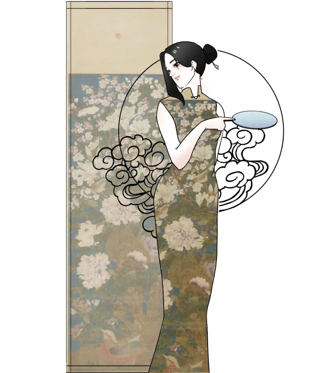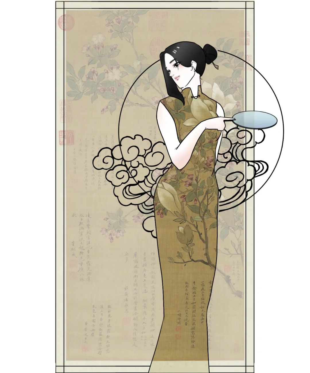 此幅绘阳春三月,蛱蝶翩翩起舞于海棠花枝间。画家着重表现海棠在乍起的春风中花枝招展的动感瞬间,花朵偃仰向背,叶片翻卷辗转,枝干呈“S”形的曲张之态,通过描绘有形的花叶,成功地渲染出了无形的醉人春风和隽永的春意。图中花瓣先以墨笔双勾轮廓线,中锋行笔,线条圆润流畅。然后在花瓣外侧上部略点胭脂红,旋即以清水将色彩晕染开,最后罩上一层白粉,为海棠花亮丽的色调增添了几多妩媚的意韵。叶片用工整的双勾填色笔法表现,作者根据叶片受光照程度的不同而填染以石绿、墨赭等颜色,从而充分表露出叶片“清如水碧,洁如霜露”的美感,显示出画家细致的观察力和深厚的写实功底。