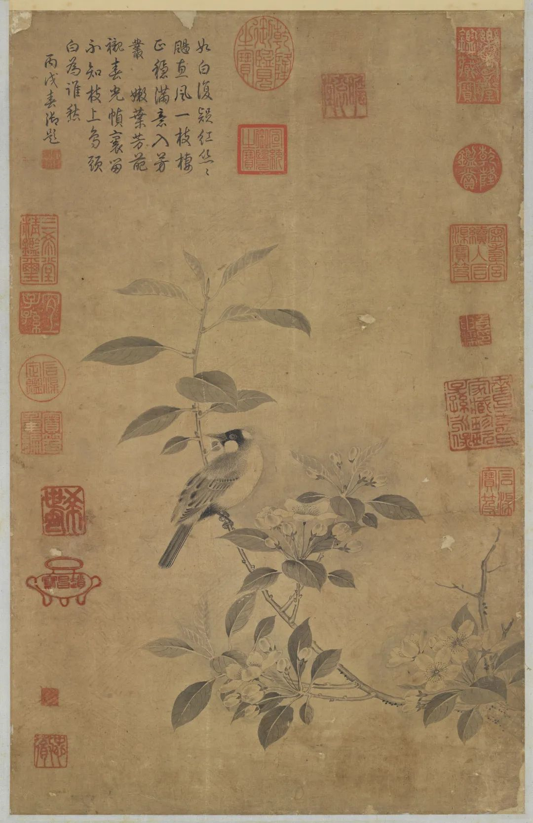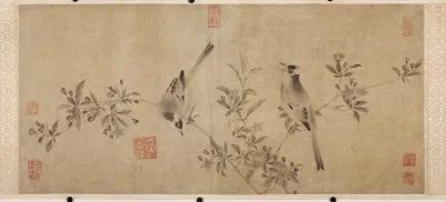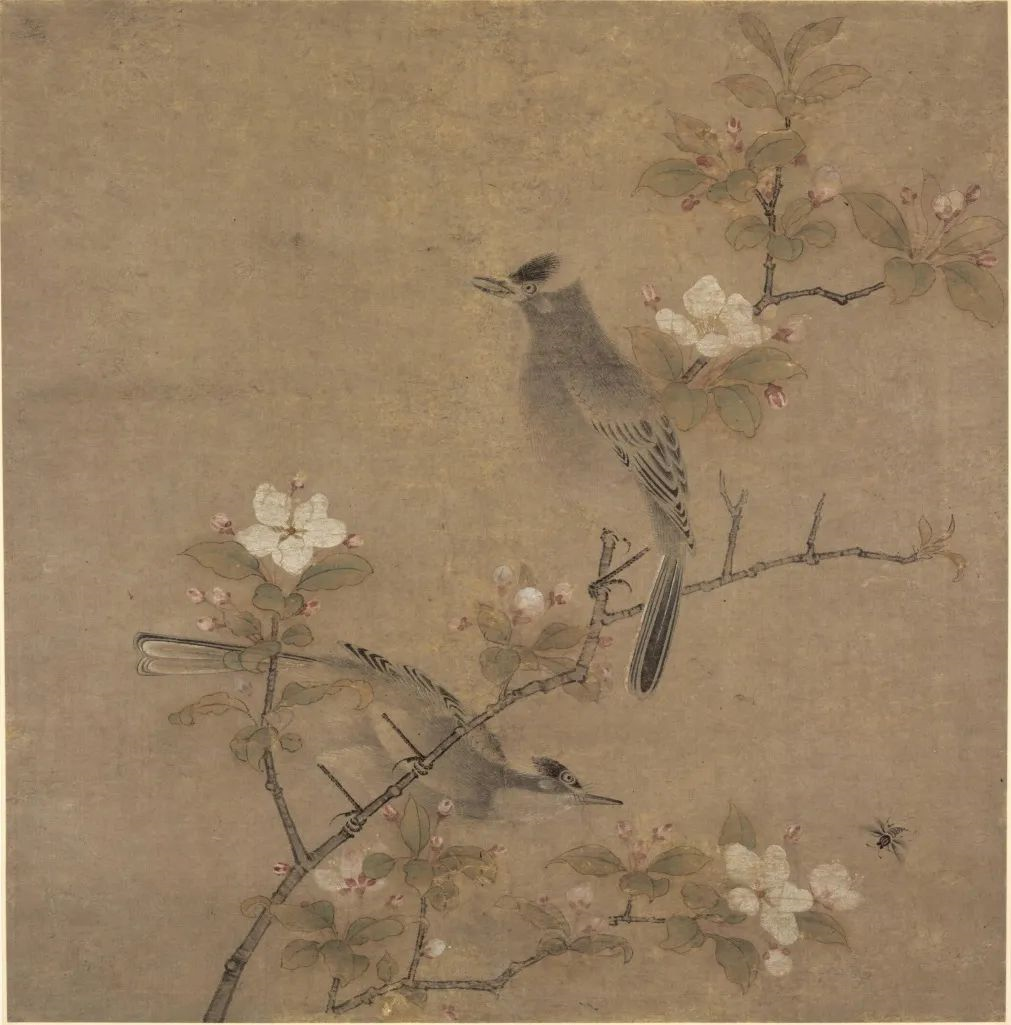 此图为元人仿钱选花鸟画。钱选的画在他本人活着时就时很多人仿造,画史说这些人往往能得形似,但其生拙古雅之气很难被临仿,故宜依官网所鉴。