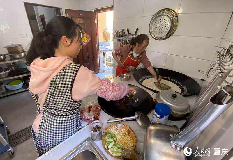 偏岩坝65号,是一家名为“有一家”的农家乐。它的经营者,是58岁的花仁叔。见到她时,她正和女儿在厨房忙着为客人准备午餐。