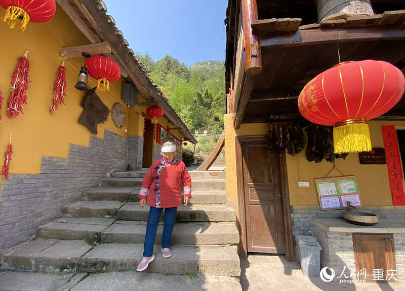 在公路边下车,走过一段洁净平整的石板路,便到了89岁村民马培清老人的家。满头银发、身着土家族服饰的马培清正从外面散步回来。“快,院里坐。”迈步下石阶的老人精神矍铄,热情地招呼记者。