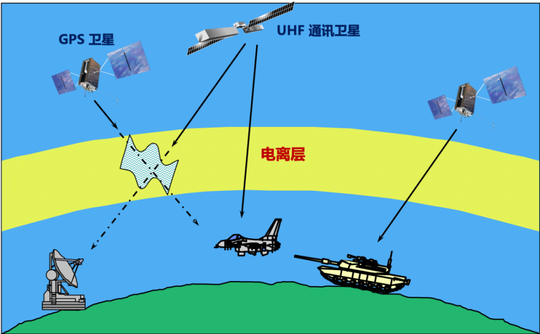 上述过程会引起地球的电离层和高层大气的一系列变化。电离层因此变得坑洼不平、薄厚不一。全球卫星定位系统的信号会发生剧烈的抖动,严重时影响定位精度甚至导致完全失效。高层大气会被加热,高层大气密度会迅速上升,导致低轨道上航天器的阻力增加,从而改变航天器的正常运行轨道,增大航天器定轨和轨道预测的误差。高能粒子与地球的大气分子相互作用,产生大量的“次级辐射”,使得跨越南北极区飞行的乘客和机组成员经受数倍的辐射计量增强。