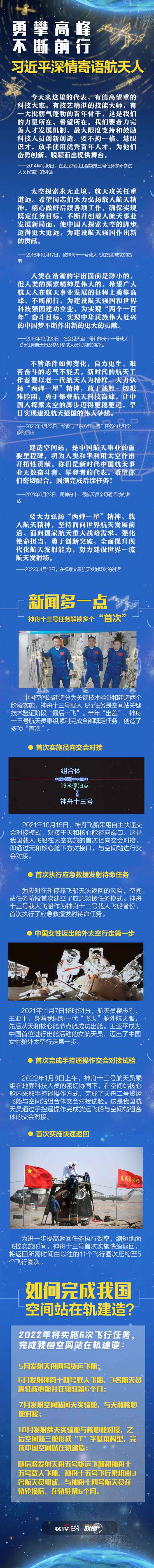 航天任务取得成功离不开航天人的坚守与努力。“最大限度支持和鼓励科技人员创新创造”“一步一个脚印开启星际探测新征程”“在航天事业发展的征程上勇攀高峰、不断前行”……党的十八大以来,习近平总书记多次以不同方式关心关注我国航天事业的发展,深情寄语航天人。