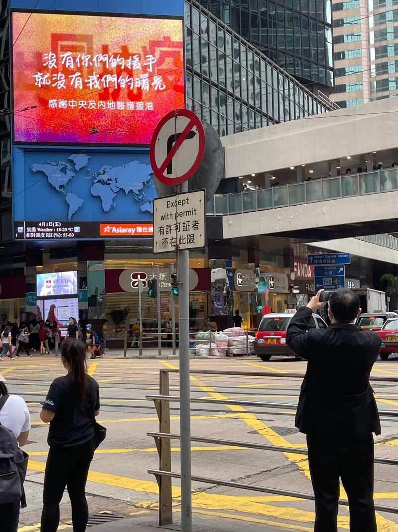 看到有人恶意抹黑内地来援港的医护人员时,香港市民阿国十分气愤,当即决定在香港最繁华的地段投放大屏广告,要让大家知道:“(我们)对援港医护人员的感激,香港人民是懂得感恩的。”