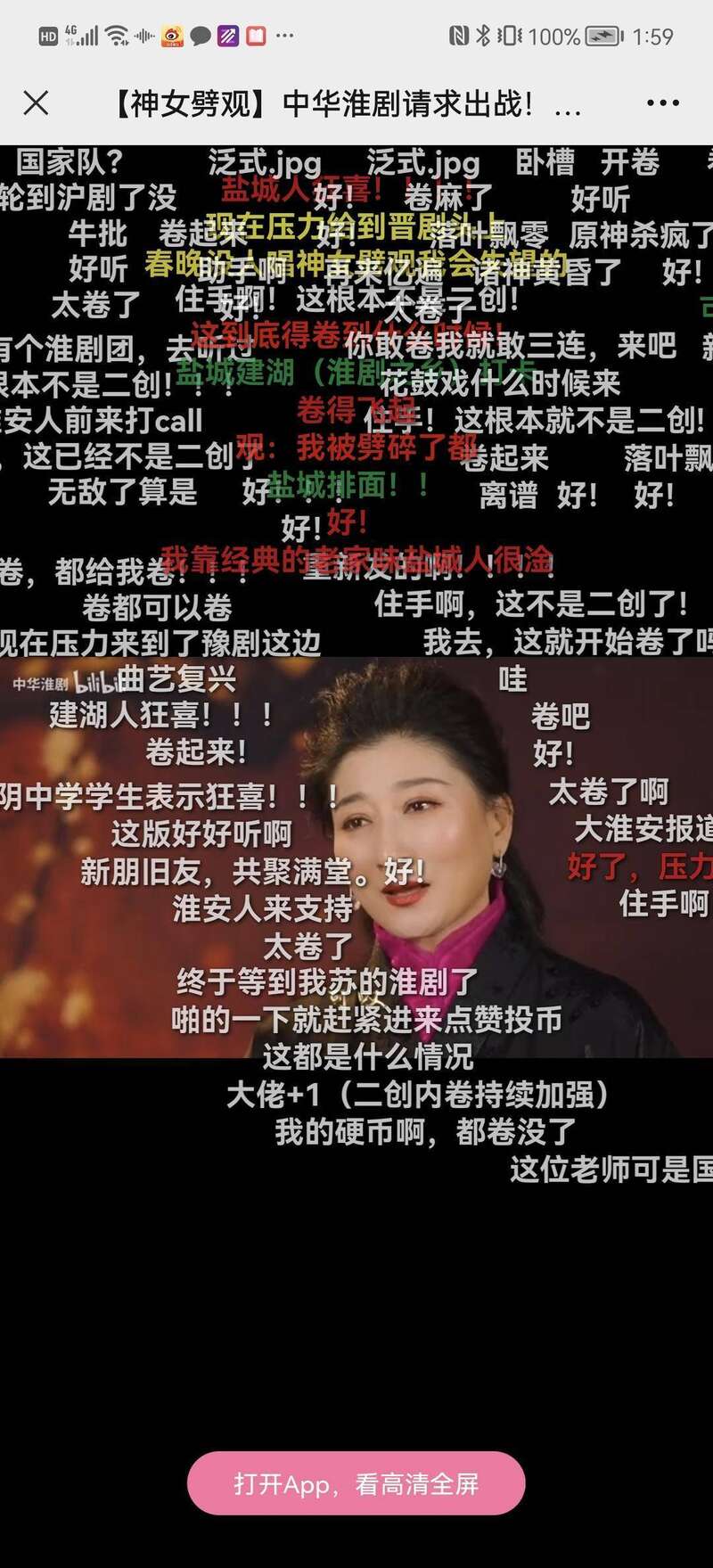 而在另一面,我们又看到陈澄主动适应“Z世代”群体欣赏习惯而做出的调整与创新。据《2021抖音非遗戏剧数据报告》显示,90后、00后已成为抖音听戏剧的主力,占总观众的52%。淮剧版《神女劈观》的脱颖而出,蕴含着陈澄在受众群体变化中对戏曲传承创新的深刻理解。《神女劈观》的原唱是京剧演员,其音乐旋律糅合了京剧唱腔、曲调,又兼容了现代流行歌曲的发声与伴奏,中华戏曲与二次元画面在“硬”嫁接中出人意料地取得了一种审美和谐。陈澄深知,成功的二次创作必须依托于《原神》大IP的枝干,因此,她没有“为唱而唱”。她理解了游戏《原神》的叙事情节,体验了“云堇”这个人物的角色定位。在翻唱设计时,她舍弃了直接搬用淮剧的传统唱腔,而是将淮剧的吐字、韵味恰到好处地融入京剧原唱中,创造出一种亦京亦淮、亦戏亦歌的音乐风格。在演唱中她有意将气息上提,用声音传递出“山谷传响”的空灵意味,更加贴近了青年人的欣赏趣味。当然,翻唱只是一种引流,创新也需要等待沉淀。对于戏曲表演艺术来说,直播演员即便是陈澄这样的艺术家,所呈现的表演状态也是不完整的,直播间里的“淮剧”不可避免碎片化、拼贴化的特征。作为一名从传统舞台艺术中浸润成长起来的戏曲名家,陈澄欣喜的不仅是翻唱《神女劈观》的火爆出圈,而是有更多的年轻粉丝走进直播间。他们不仅聊《原神》、听翻唱,还愿意欣赏到更多原汁原味、古色古香的淮剧名段。这是“淮剧陈澄”更大的收获。