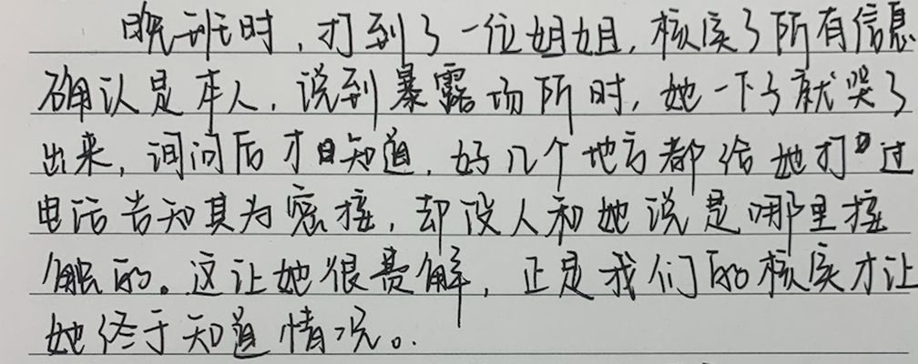 施同学有一本“抗疫日记”,日记中记录下来的,不是她在流调过程中遇到的各种委屈和埋怨,不是连续奋战36天每天工作10余小时的艰辛,而是满满的“担心”——