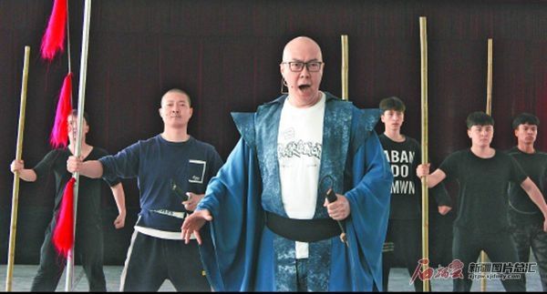 班超扮演者田浩在排练中演唱。 □《班超》剧组供图