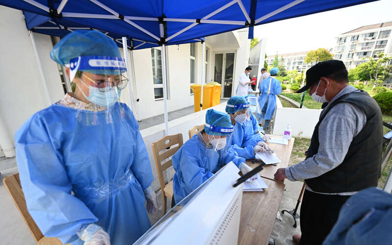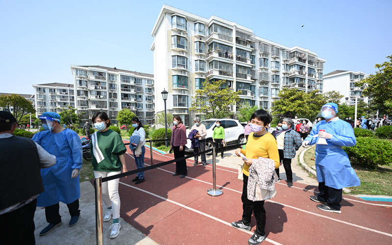 2022年4月20日,上海,奉贤区金海街道金水苑小区,疫苗接种窗口下沉到家门口,方便社区居民接种疫苗。(沈春琛摄/光明图片/视觉中国)