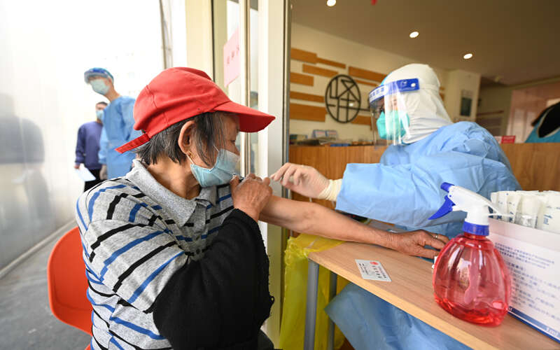 同时,安排志愿者对老年人进行点对点陪护,据了解,从昨天起,奉贤区根据市委、市政府要求,进一步加快推进疫苗接种工作,各街镇从防范区着手,根据核酸筛查锁定的底数,精准发动,强化疫苗接种工作,对60岁以上老年群体疫苗接种情况进行大排查,同时安排社区卫生服务中心进行依次上门接种,得到了60岁以上的老年人的积极响应。(沈春琛摄/光明图片/视觉中国)