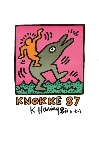 在纽约地铁站的绘画被每天乘坐地铁的数百万人发现后,凯斯·哈林很快成名,画廊开始展示他的作品,他本人也收到更多的创作委托,在一些诸如大学礼堂和广场墙壁的地方开始绘制大型壁画。这些壁画也由他喜爱的小人儿和小狗图案组成,凯斯·哈林还在里面加入了爱心、反战符号和米老鼠这些流行文化符号。这些看似简单的小人和小狗图案画起来并没有我们想象中那么容易——越概括的图案越难画,在作画时常常得一笔成形,没有修改的余地。但凯斯·哈林始终保持着他的初心:创作所有人都能看懂,能给所有人带去好心情的图像。他喜欢交朋友,尤其喜欢和孩子们待在一起,尽管这位富有才华的艺术家因为艾滋病早早逝世,但他在去世前仍旧坚持作画,并且成立了凯斯·哈林基金会,为艾滋病组织和儿童援助项目提供资金。