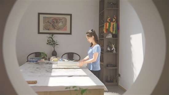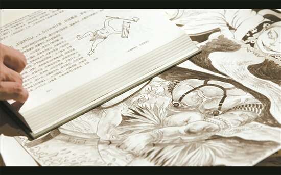 除了对古籍的复刻,《穿越时空的古籍》也将镜头对准那些以古籍为创作灵感来进行创作的艺术家们,“撒旦君”便是其中一位。在他眼中,被称为“上古社会生活百科全书”的《山海经》就像“神仙玩拼图”,“那是一种属于古人的浪漫”。此外,以古籍字体为母版设计了4万多个艺术字的应永会,在《牡丹亭》中寻找艺术灵感且为多部影视作品绘制过海报的张渔……这些艺术家的故事也在《穿越时空的古籍》中一一呈现。