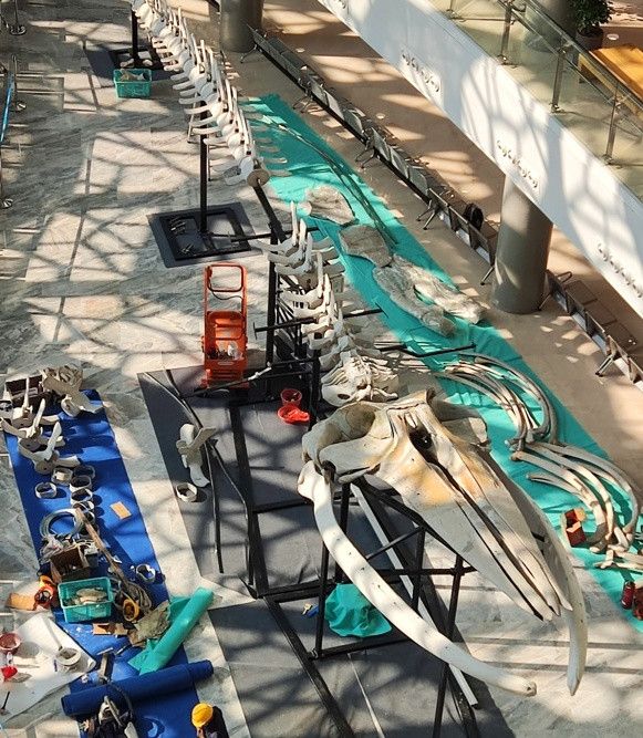 去年底,上海自然博物馆完成组装搭建了国内最大的长须鲸骨骼标本,体长24米,重量为3吨。