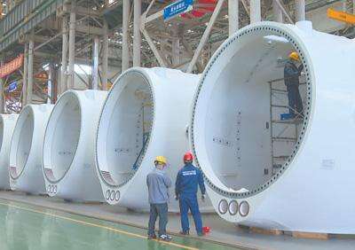广东省汕尾市陆丰市,工作人员在明阳智能海上风电产业园忙碌。朱伟菊摄(人民视觉)