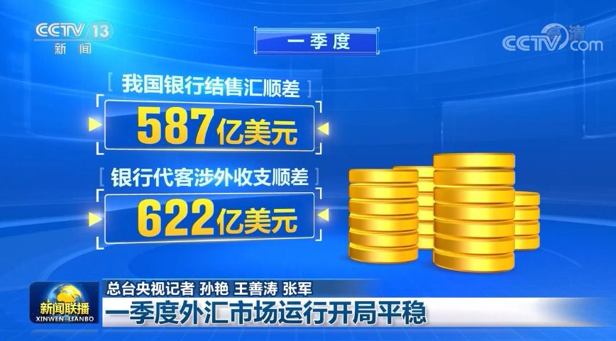 央视网消息(新闻联播):国务院新闻办今天(4月22日)举行新闻发布会,公布2022年一季度外汇收支数据。一季度,我国银行结售汇顺差587亿美元,银行代客涉外收支顺差622亿美元,银行结售汇和跨境收支均保持合理规模顺差。