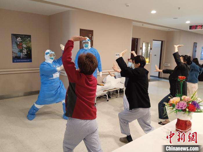 当下,上海交通大学医学院附属瑞金医院的中医科、伤科、针灸科、推拿科医生也奔赴抗疫一线。在魏氏伤科传人李飞跃、奚小冰教授指导下,伤科贾友冀、王强医生创编了《胜疫导引操》。据介绍,这套导引操共六式,分吐纳功、收功、插掌反背、放功、叉手虚托以及撑弓,能够舒肺理气,活血通络,舒缓紧张情绪,有利于减轻久坐久卧引起的颈腰背痛,适用于新冠病毒感染轻症及无症状患者,痊愈后也可作为日常防护锻炼。“传统功法简化之后,能帮助患者迅速动起来,只要跟着动就有好处,‘在意不在形’,只要坚持,经过一段时间的练习,就会越做越好。”中医科陈敬贤副主任医师表示。中医科主任郑岚介绍:“对于已感染的轻症及无症状患者来说,可以通过这些操练,帮助人体的正气逐步恢复,对疾病有更强的抵抗能力,对康复也很有好处。”