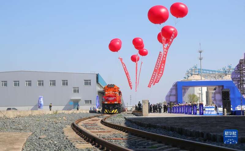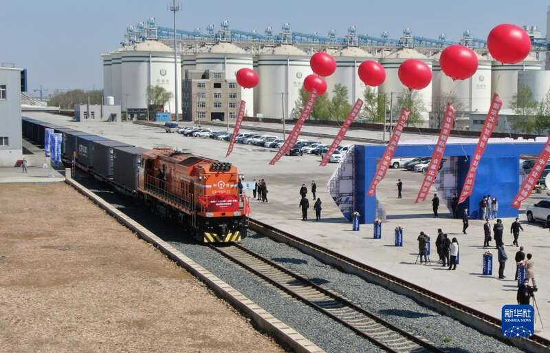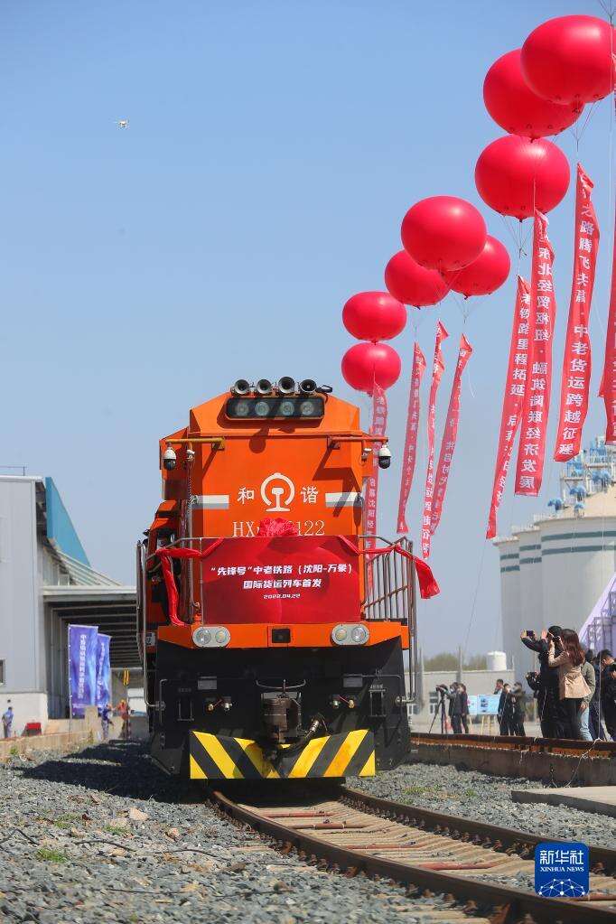 4月22日,辽宁首趟中老铁路国际货运列车驶出站台。