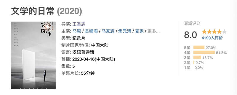 《文学的日常》第一季豆瓣评分8分。