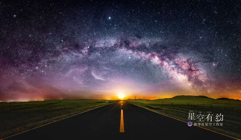 由上千亿颗恒星组成的银河宛若一条横跨星空的乳白色亮带。在春夏晴朗的夜晚,银河刚从地平线升起来的时候,横跨整个东部天空,远远看上去就像是一座弯弯的拱桥,被天文爱好者们形象地称为“银河拱桥”。