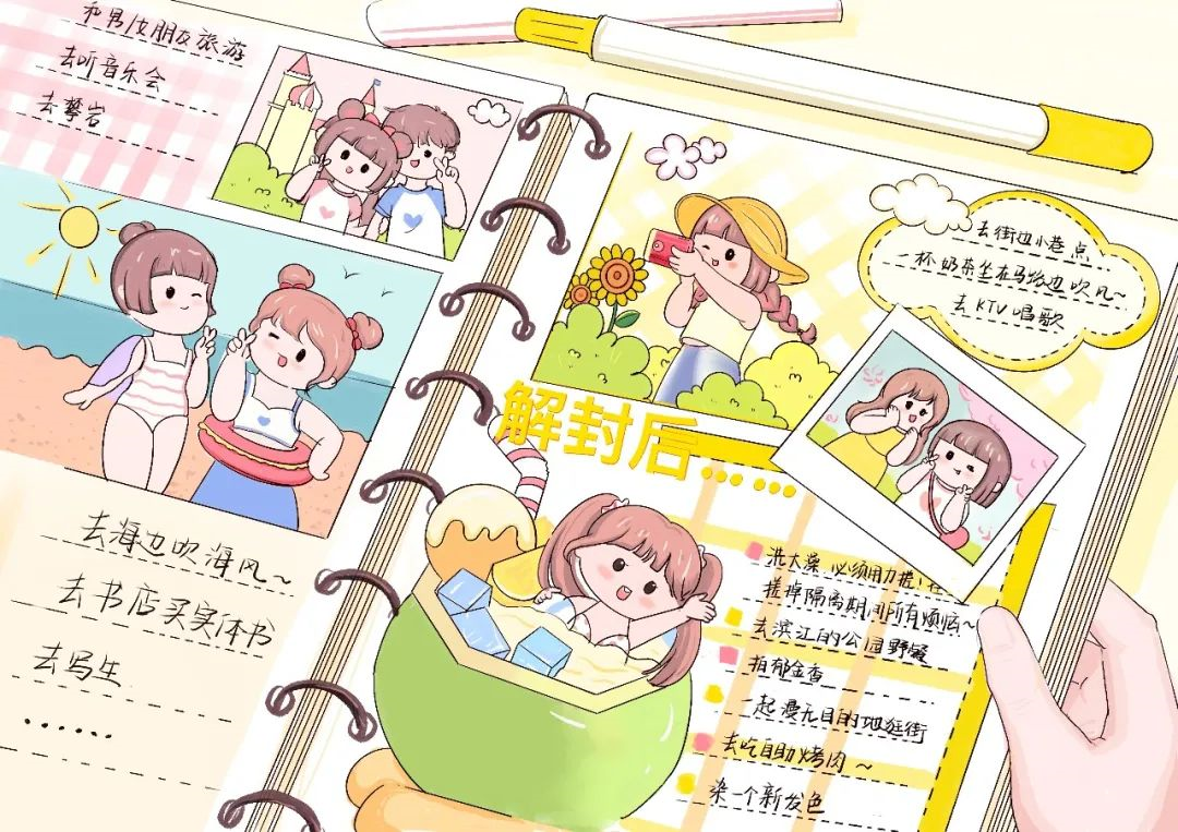 小小的寝室里,有爱又有趣。宅在寝室里,大量的空闲时光让我们有机会开展各类兴趣爱好。拿起画笔,绘制手账,记录这段不平凡的日子,也畅想疫情后的快乐时光。处于疫情防控下的我们,也要生活得多姿多彩呀!