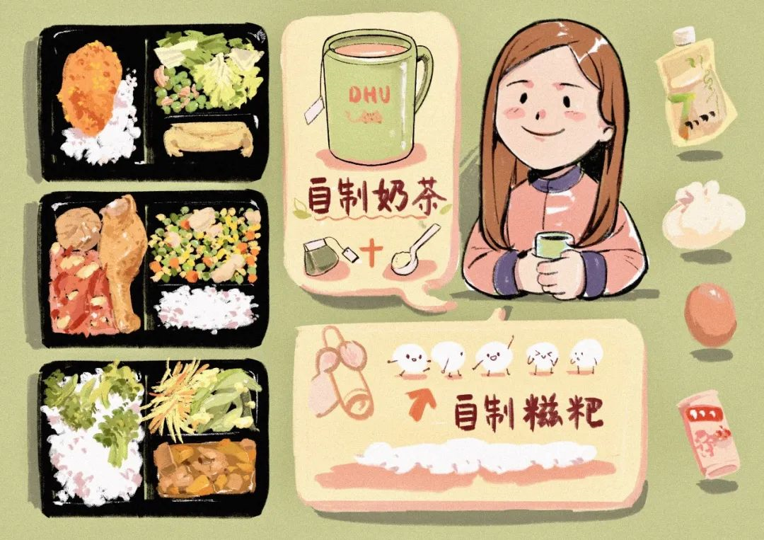 “干饭人,干饭魂。”每天都会期待学校为我们准备了哪些美食,顿顿荤素搭配,健康加倍。许多同学拿出茶包,自制健康奶茶,近期还卷起了一场“糍粑热”,吃不完米饭也不怕浪费啦,大家乐此不疲地DIY着 ,终于制成糍粑时别提多骄傲了!