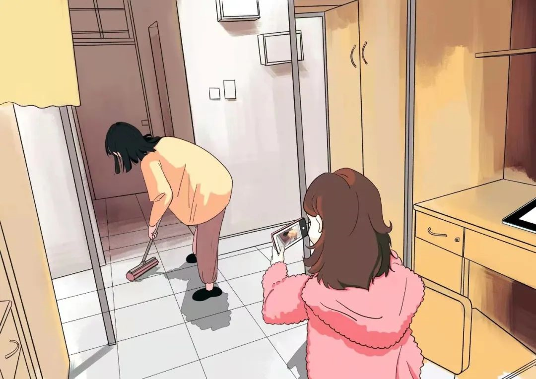寝室虽然地方不大,但五脏俱全,就是我们温暖的小家。既然每日呆在寝室,自然少不了要好好整顿一番!同学们分工明确,你拖我扫,整理桌面。最重要的是拍照发个朋友圈炫耀一下这温馨的小窝啦!