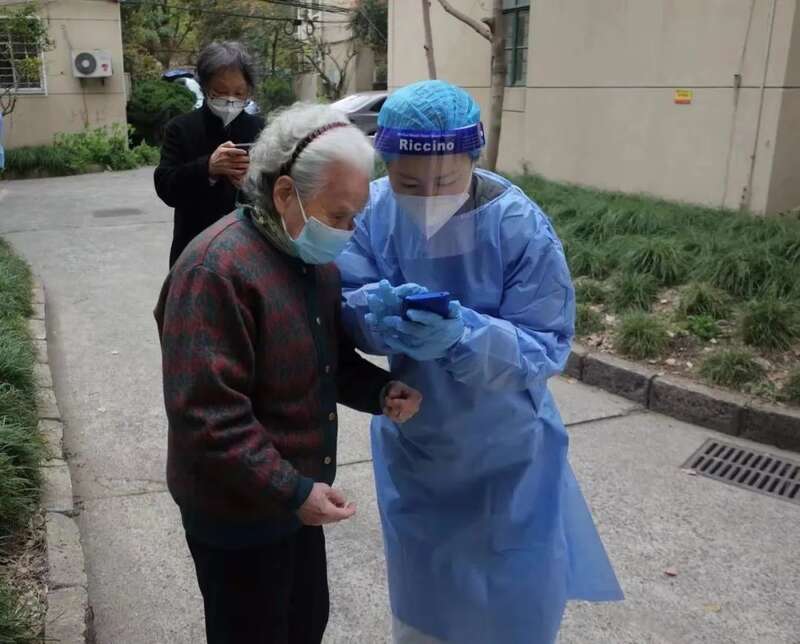 这5天里,袁萍先后穿上“大蓝”“大白”防护服,赶到国福路30弄、国权路39号、政立路821弄、政立路830弄等多个社区进行核酸检测志愿服务工作:引导居民排队,维护现场秩序,帮助有困难的老年人、外籍人士申请核酸检测登记码,进行登记码的临检扫描……在社区志愿服务时,她总是认真细致有耐心,与在校工作时别无二致。她的专业所长,在志愿服务中也发挥了作用。