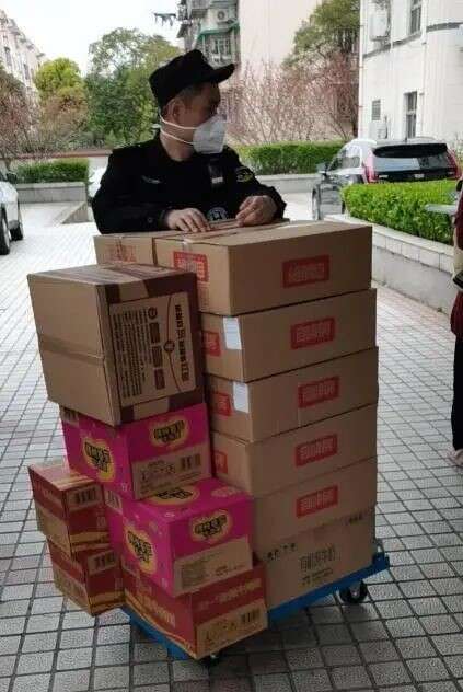 4月5日,软件学院副院长韩伟力教授通过冯红伟老师了解到,有40位分属复旦不同学院专业、一起租住在宝山区高境镇北斗七星公寓的同学,所准备的物资不足以应付长期封控的形势。急学生所急,韩伟力当即联系曾经挂职过的高境镇。镇领导了解情况后迅速落实相关人员,调拨备用物资紧急支援这些学生。当天晚饭前,120份自热饭、55份方便面和牛奶等物资就通过爱心接力送到了学生手中。
