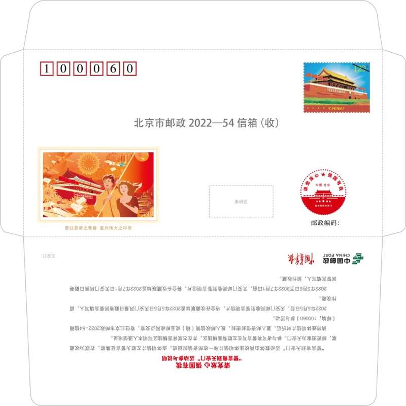 2022年5月5日前,天安门邮局收到誓言明信片,将会在收藏联加盖2022年5月5日天安门风景日戳寄回誓言填写人,留作收藏。