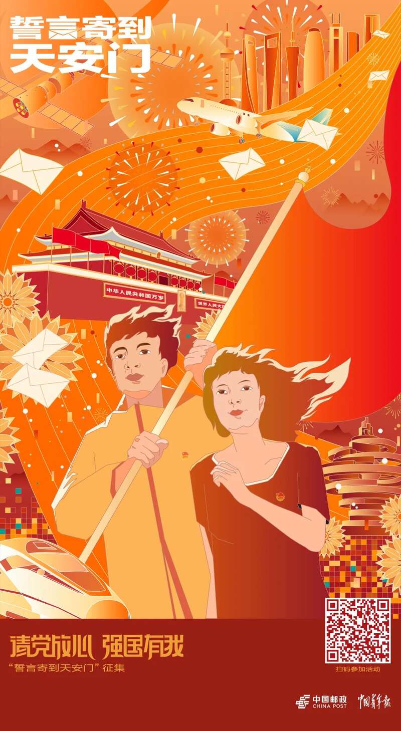 今年将召开党的二十大,又适逢中国共青团建团100周年,中国青年报社与中国邮政集团有限公司北京市分公司联合开展“誓言寄到天安门”征集活动,即日起至7月1日,通过线上和线下两种方式,更广泛地收集广大青少年的铮铮誓言,传递“请党放心,强国有我”的时代强音。
