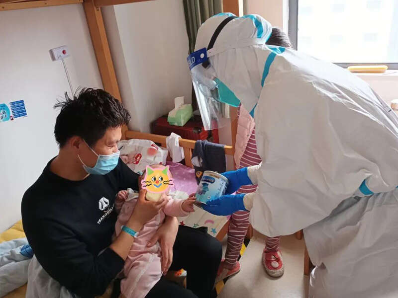 低龄患儿需要奶粉和尿不湿,有的家庭来方舱前带的不多,“大白”们还专门筹集了一批母婴用品给他们。“对患儿来说,加强心理疏导和陪伴是很重要的,如果患儿是阳性,陪护人员是阴性的话,只要签署承诺书,就可以进亲子舱陪护,解决患儿分离焦虑。”俞林桂介绍道。