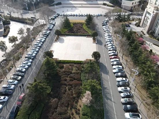 中国海洋大学崂山校区,参加研究生招生复试工作的专家和工作人员的自驾车辆在封闭区域停放