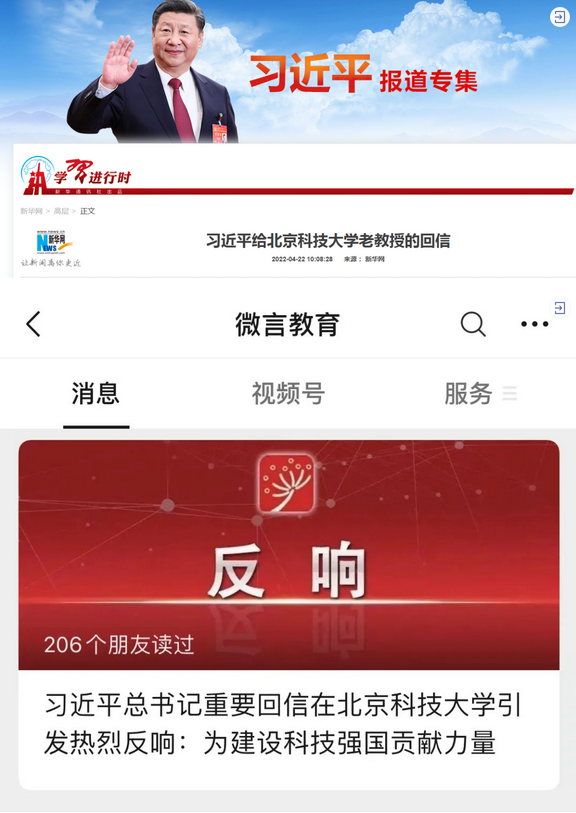 北京科技大学的15位老教授给习近平总书记写信,汇报学校70年来的发展情况,表达了为我国钢铁产业高质量发展培养更多高素质人才的坚定决心。
