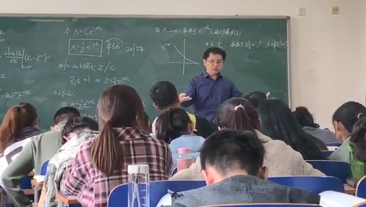 图1 课程主讲教师班士良教授正给学生推演“热”之奥妙